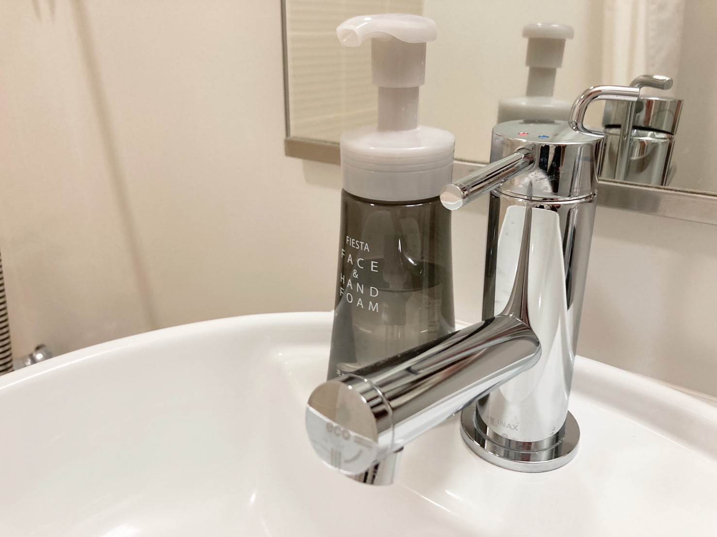 ▲洗面台部分にフェイス&ハンドソープが用意されています。
