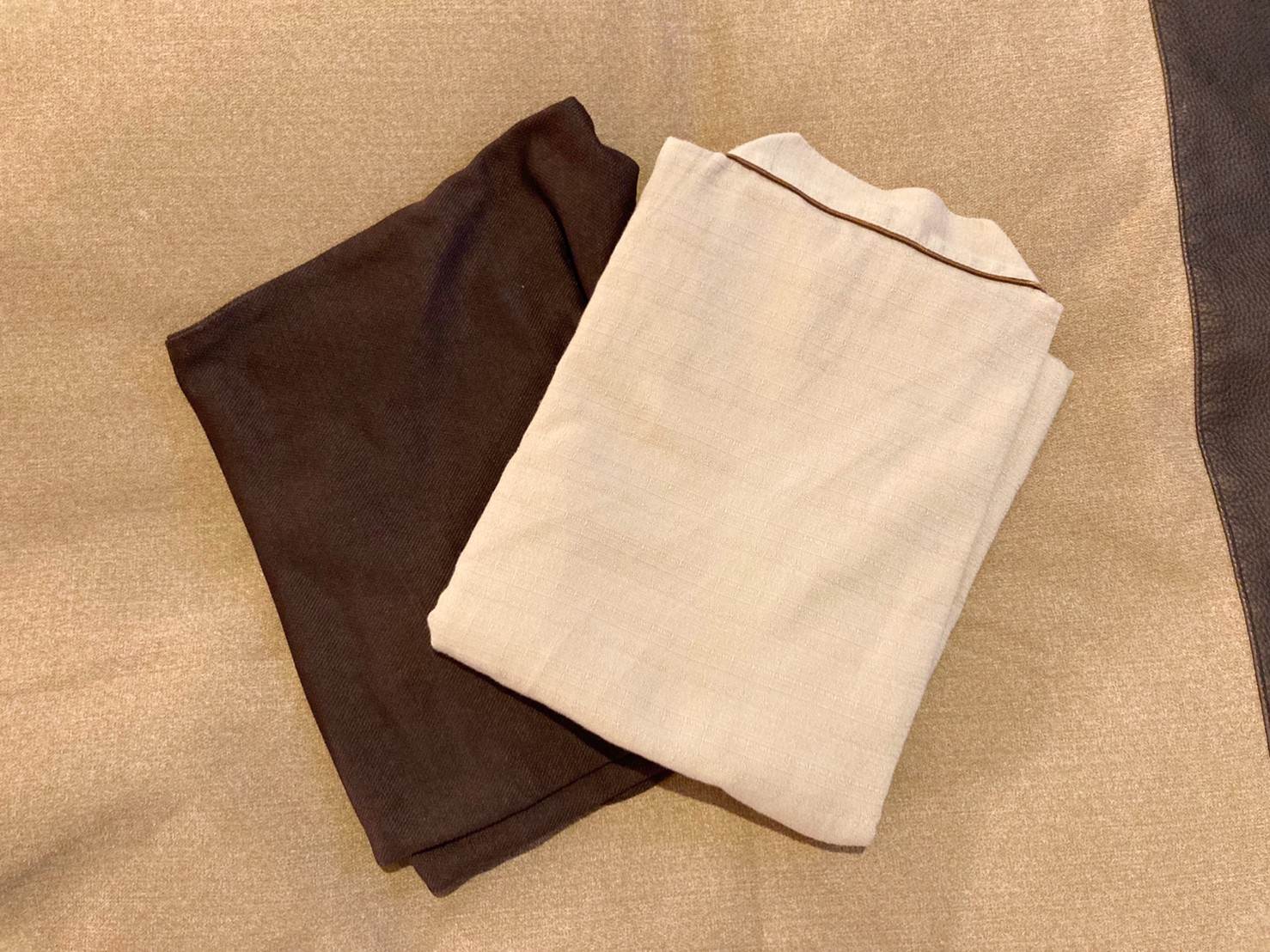 ▲館内着は上下セパレートタイプ。柔らかくて着心地が良いです。