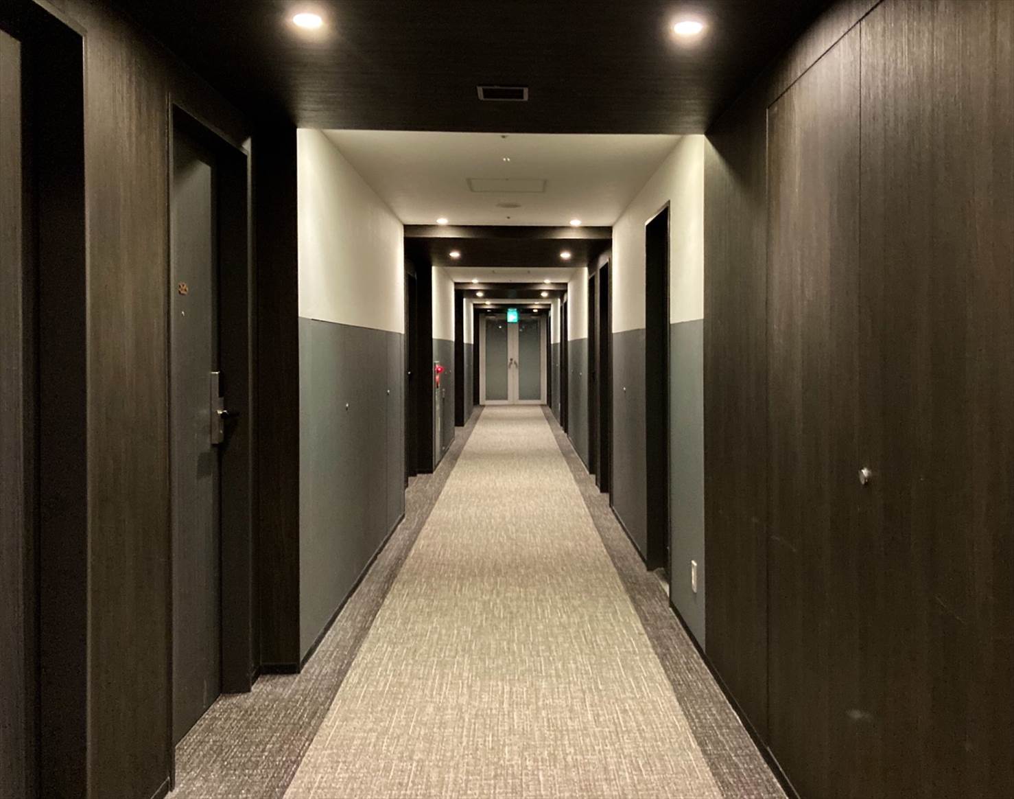 ▲廊下の雰囲気はこんな感じ!照明も廊下の色合いも落ち着いた雰囲気でホッとします。