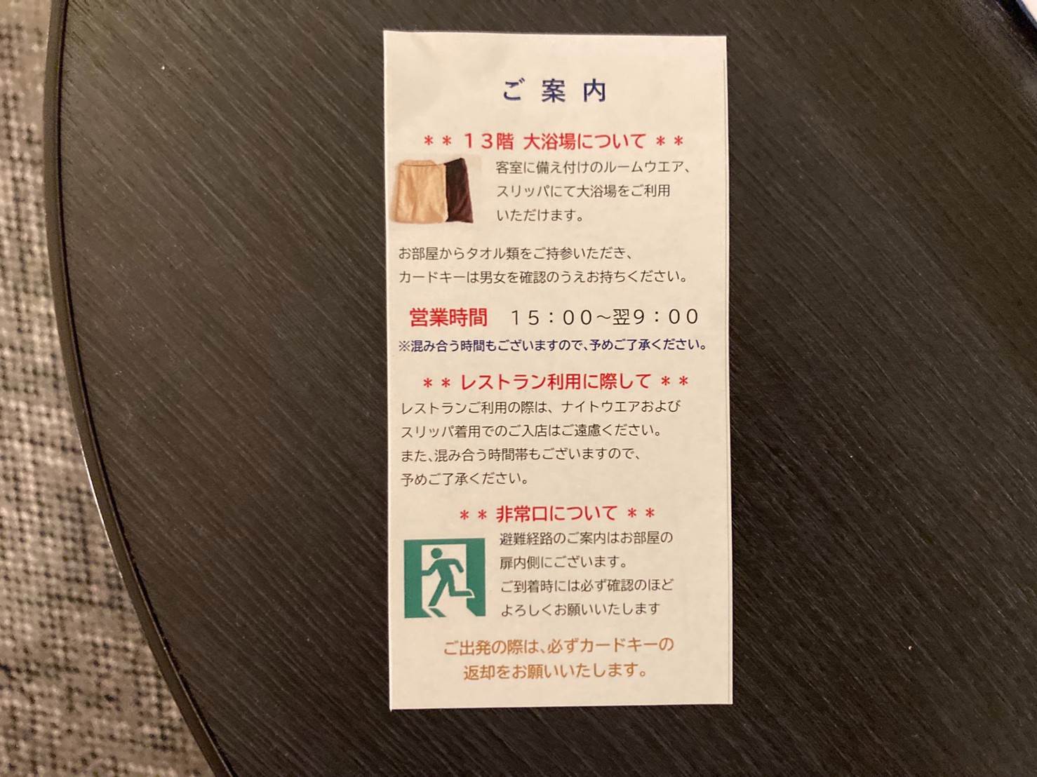 ▲「大浴場は館内着・スリッパで利用OK」とのこと。地味にこれ毎回迷うポイントなので、こういった案内があるだけで安心感が段違いです…!