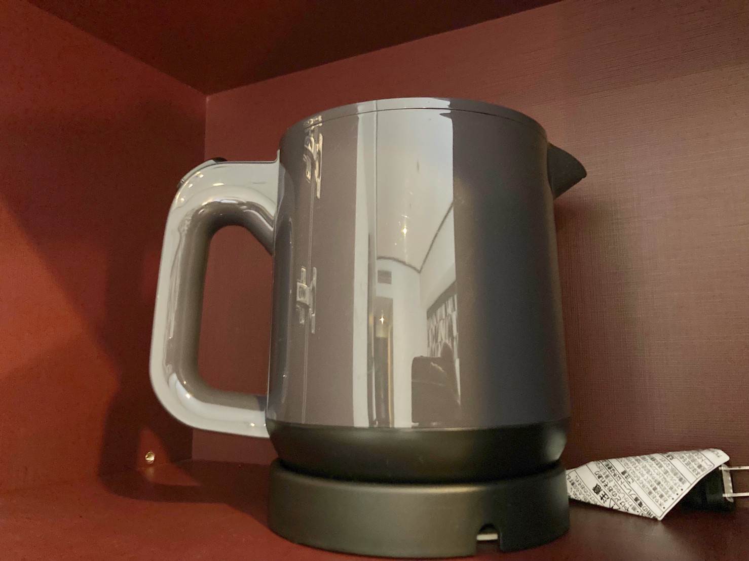 ▲電気ケトルは象印製のものが用意されていました。倒れてもこぼれない良いやつ。
