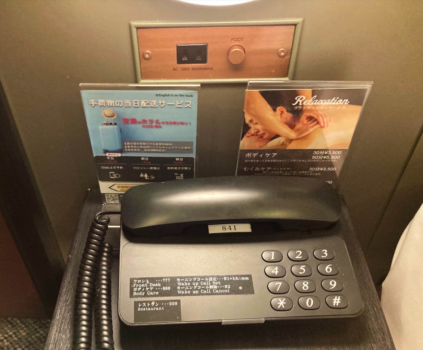 ▲ベッド脇のデスクの様子。客室内の電話がここに設置されていましたが、個人的にはスマートフォン等をここに置きたいなあ…と思います。