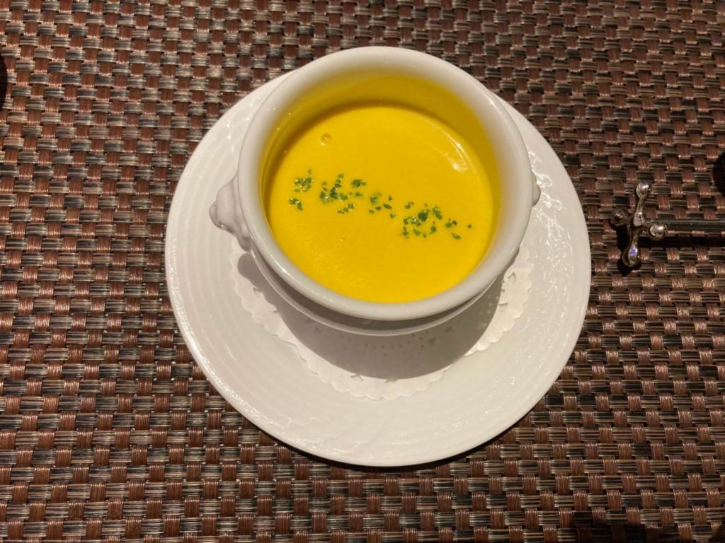 というのも、超個人的なお話、私かぼちゃが大好物で、とくにかぼちゃのポタージュというものは家ではなかなか再現もできず、幸せの象徴だったりするのです。