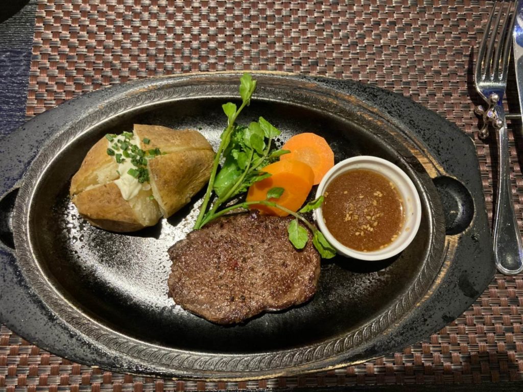 いよいよメインのお肉料理、「牛フィレ肉のステーキ」が運ばれてきました。
