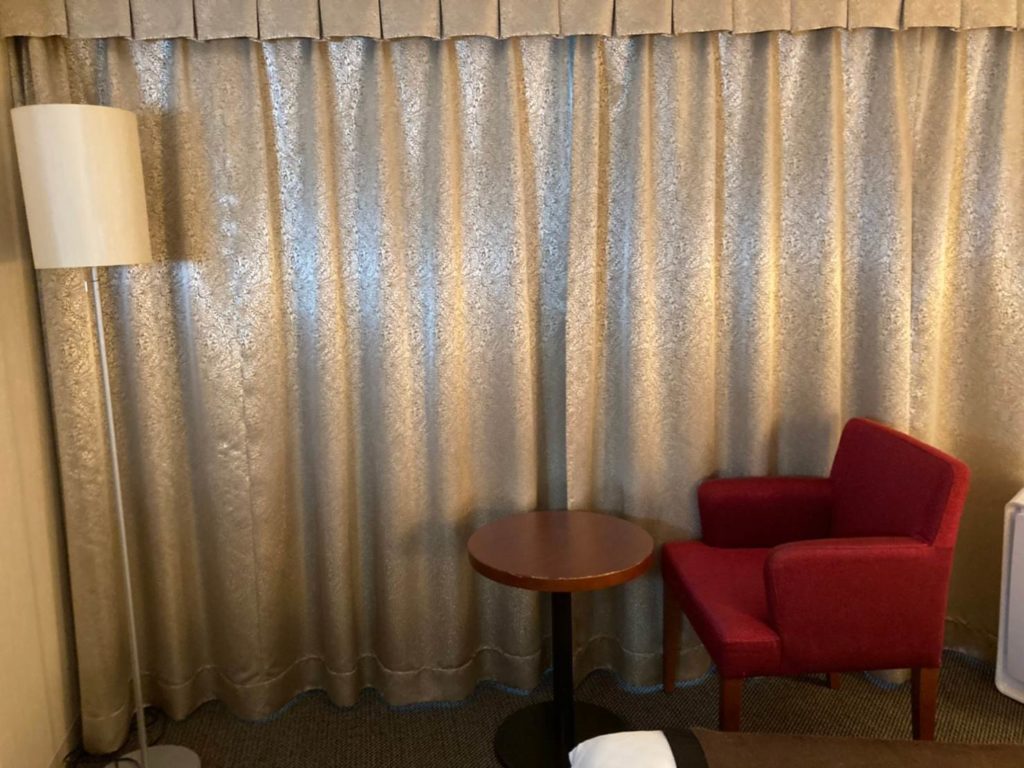 窓際には小さめのテーブルとソファがありましたが、定員2人の部屋なのにソファは一脚しか無く、2人で宿泊していた私達にとっては少し残念です。