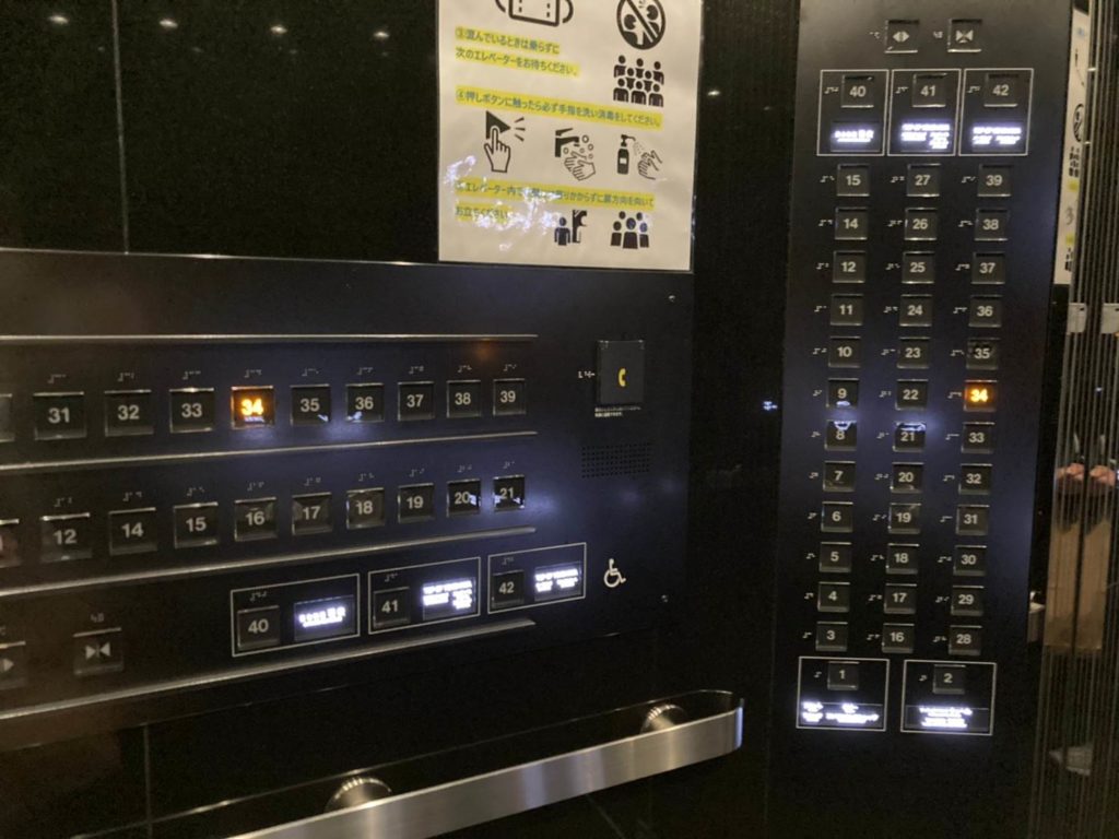そうですよね、そりゃそうですようね、だってこのホテル1階~42階まであるんですもの、全部の階に行くボタンがないと困っちゃいますよね。