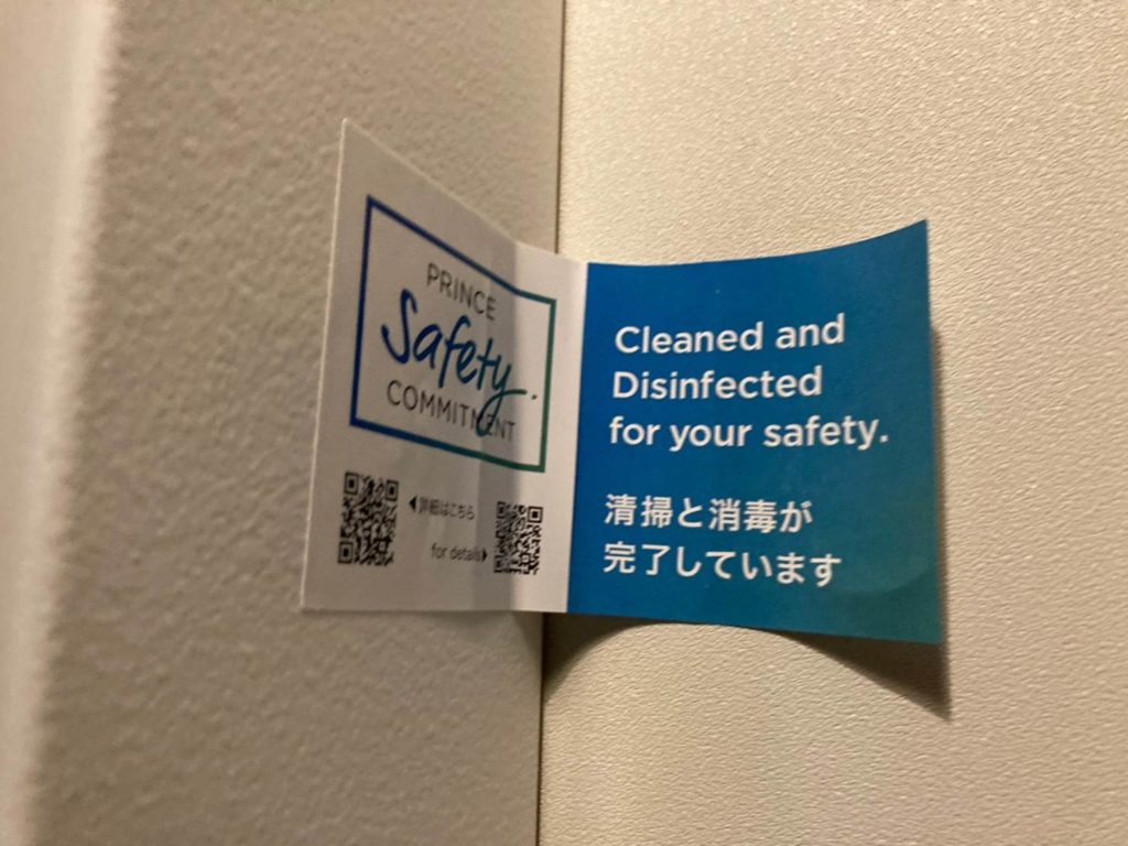 このご時世ということもあり、この部屋は清掃・消毒されており安心ですよ、ということを明示的に示してくれているようです。
