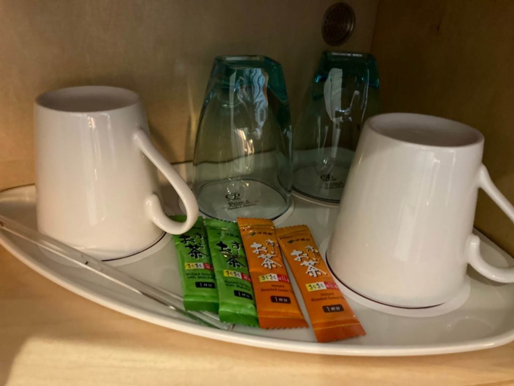 粉末タイプの緑茶とほうじ茶が備え付けてありましたが、コーヒーが無いいいっ!