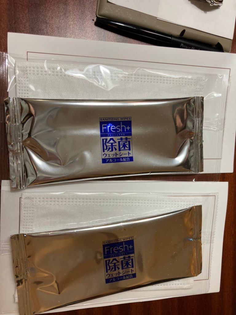 また、今このご時世であるためか、お部屋には紙マスク・使い捨てのマスクケース・除菌ウェットシートが備え付けてありました!