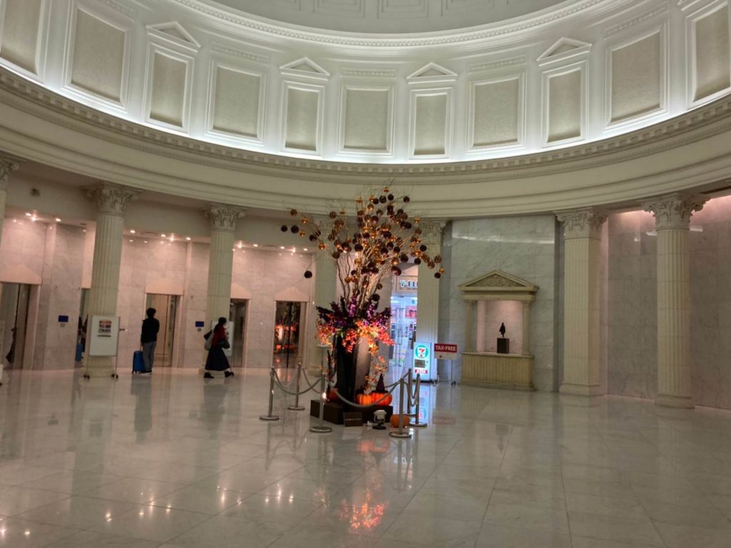 新横浜駅から向かうと、このホテルのフロントに直接アクセスするより、併設のショッピングモール「プリンスペペ」の内部を通り抜けてきたほうが早く行けるのです。