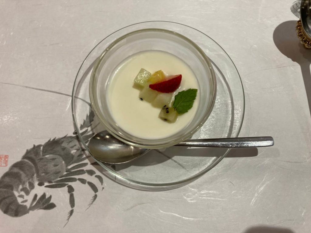 寒天タイプの杏仁豆腐ではなく、牛乳感あふれる、舌触りなめらかな杏仁豆腐でした。