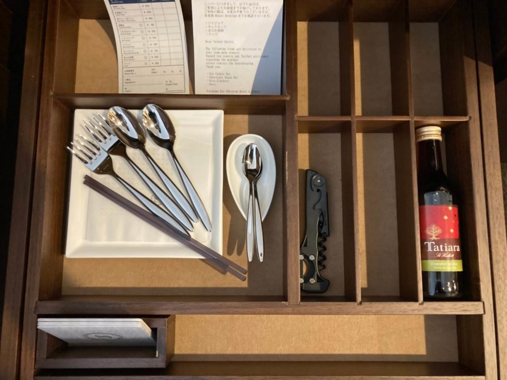 また、グラス類がある引き出しの下には、今度はカトラリーセットが。