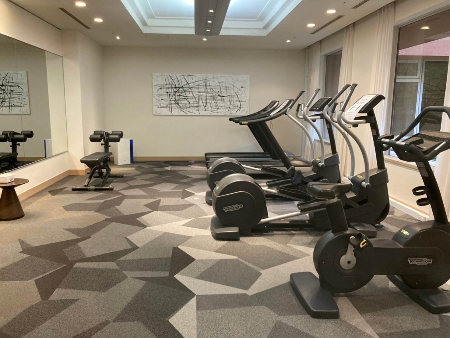 ホテルのフィットネスルームならではの雰囲気良きね
