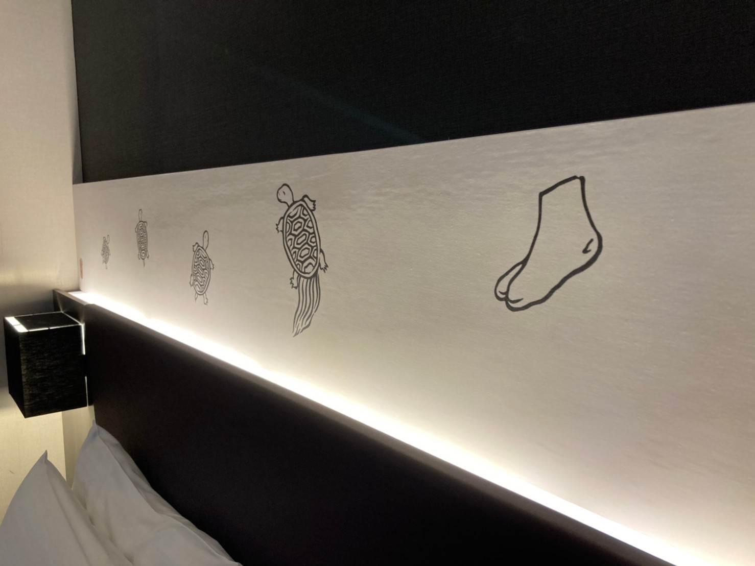 ベッドの後ろには、ホテルのコンセプト通り、”和”の雰囲気溢れるステキなイラストが飾られています。
