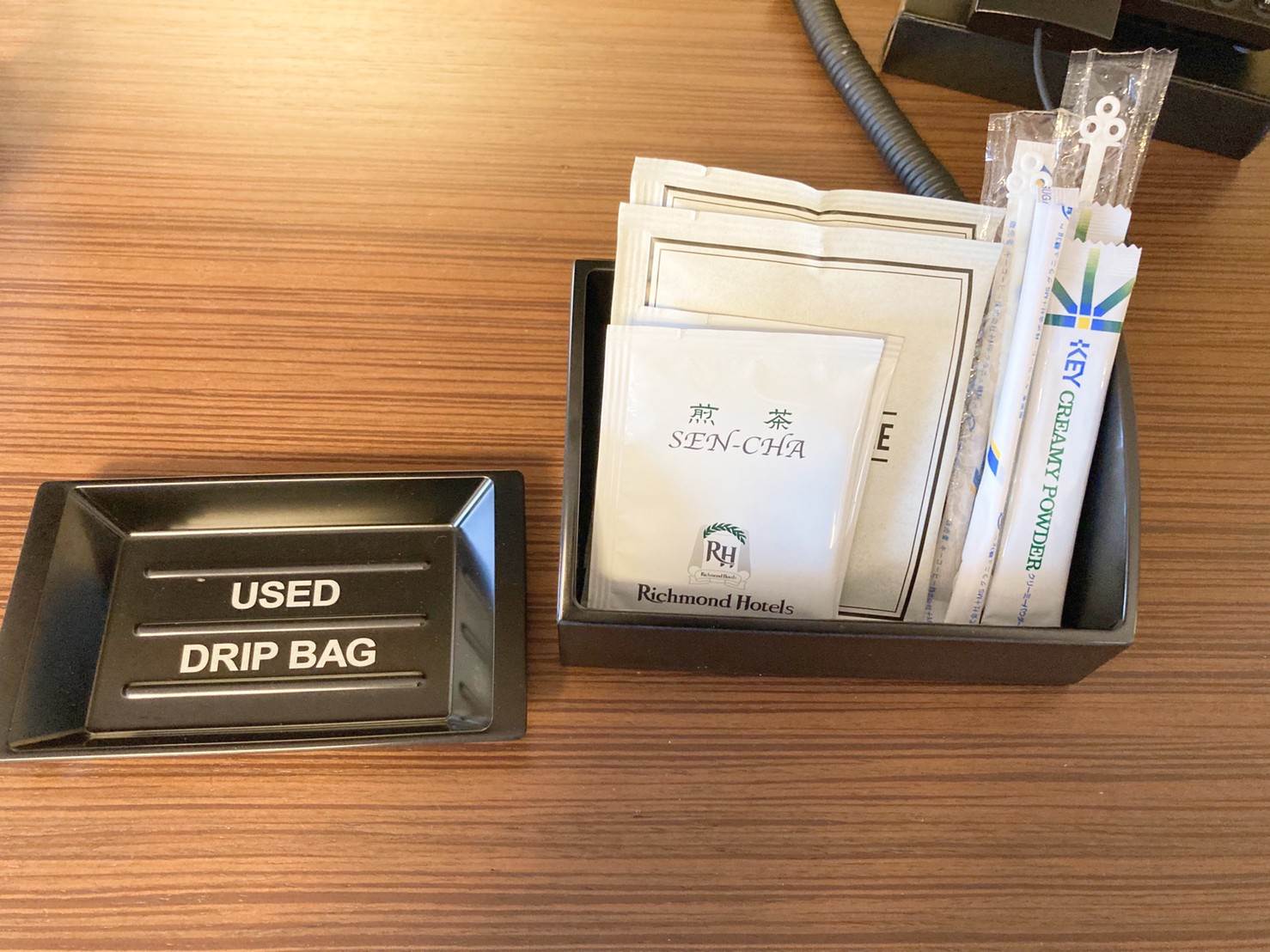 ティーセットとして、煎茶のティーバッグと珈琲が用意されています。