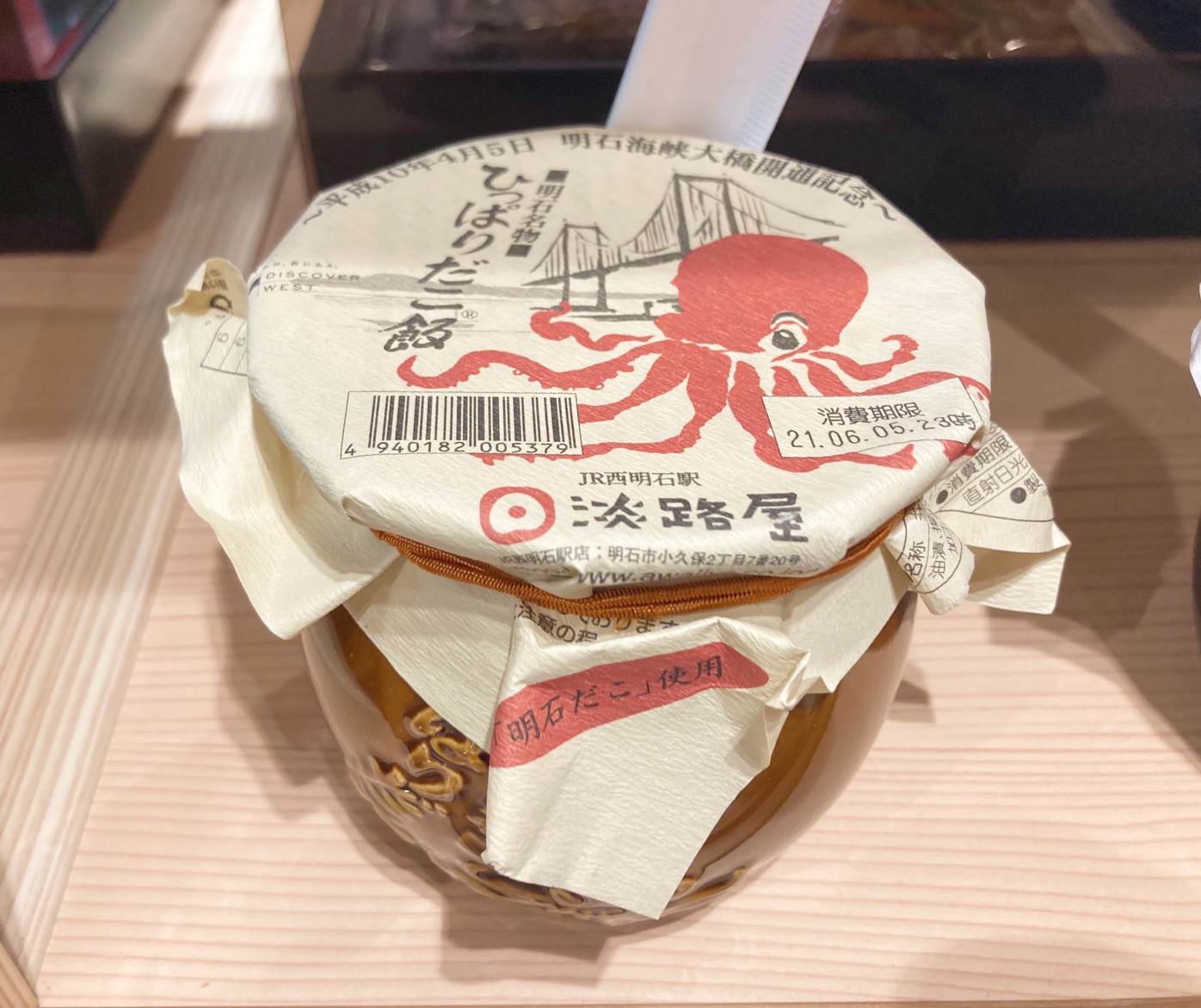 こちらはかの有名な明石名物ひっぱりだこ飯ですが、このお弁当、お弁当箱が陶器製で、ツボのような形をしています。