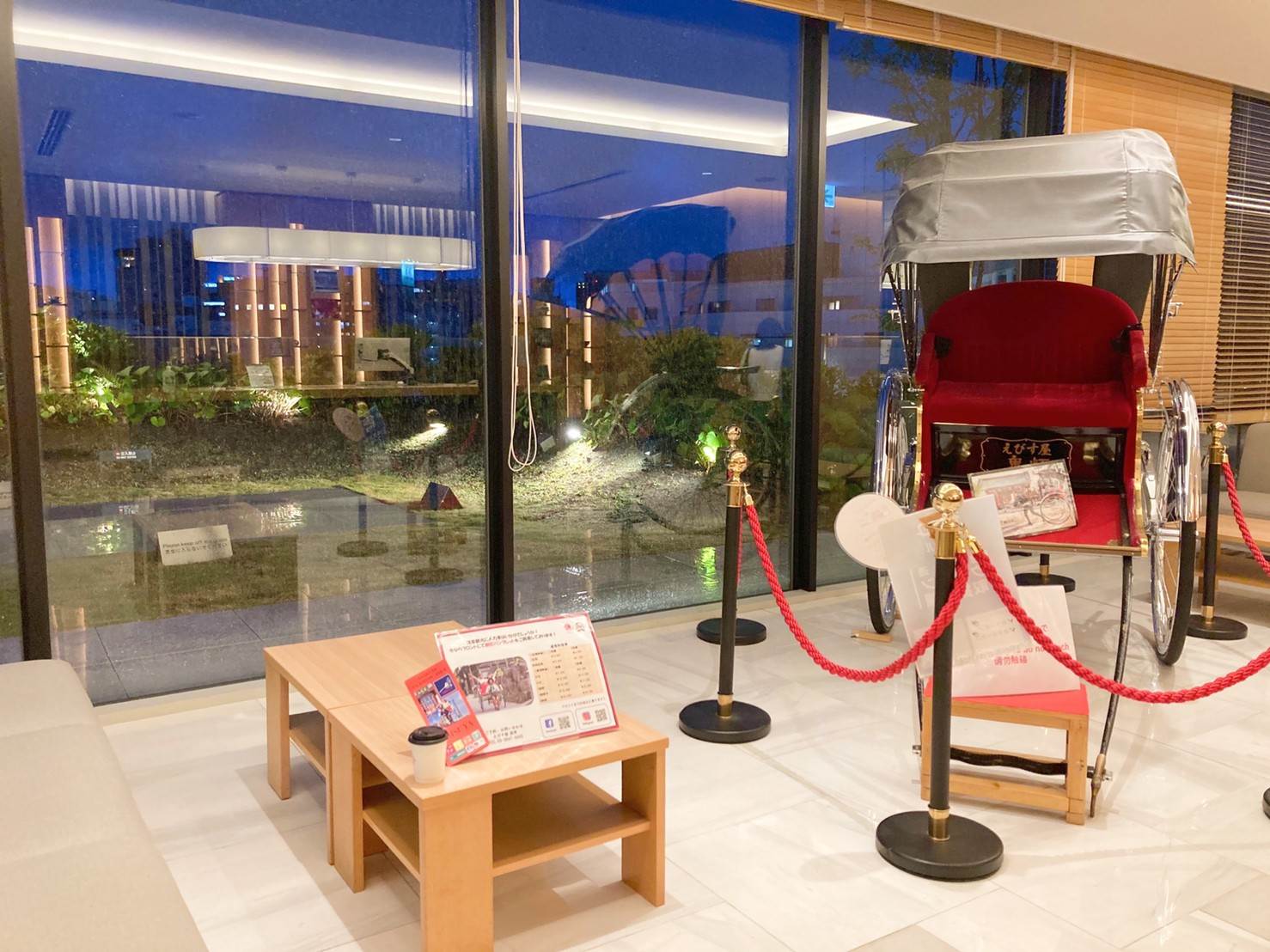 チェックインカウンターからエレベータに向かうところには、浅草らしさ前回の人力車が設置されていたりして、テンション上がります。