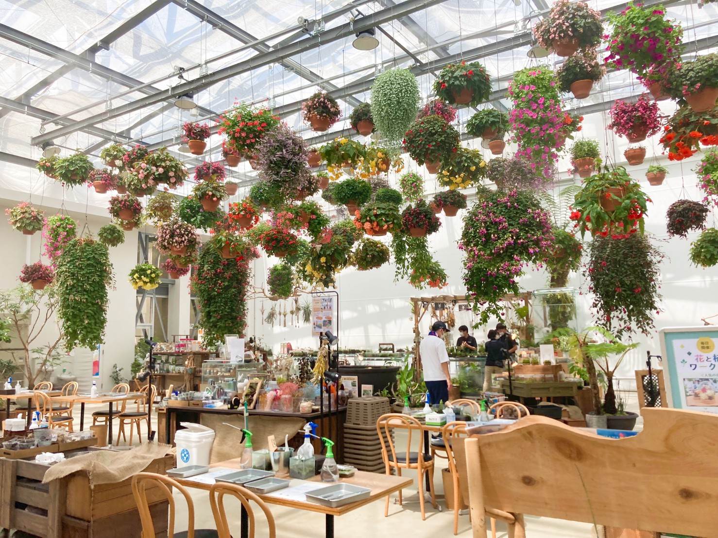 この場所からくるっと体を180°回転させると、そこではワークショップ等が行われる場所が広がっているのですが、この場所もとにかく花に溢れてる。