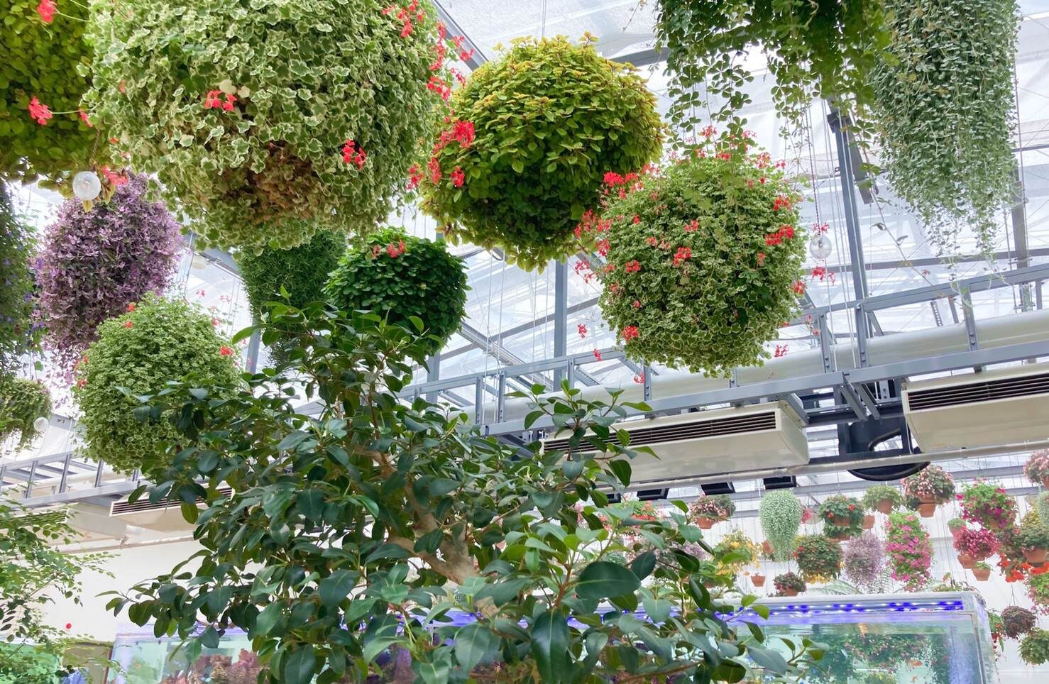 このあたりは頭上のフラワーシャンデリアに加えて、そこら中に観葉植物の鉢植えが設置されているので、ものすごく整備された植物園を彷彿とさせます…!