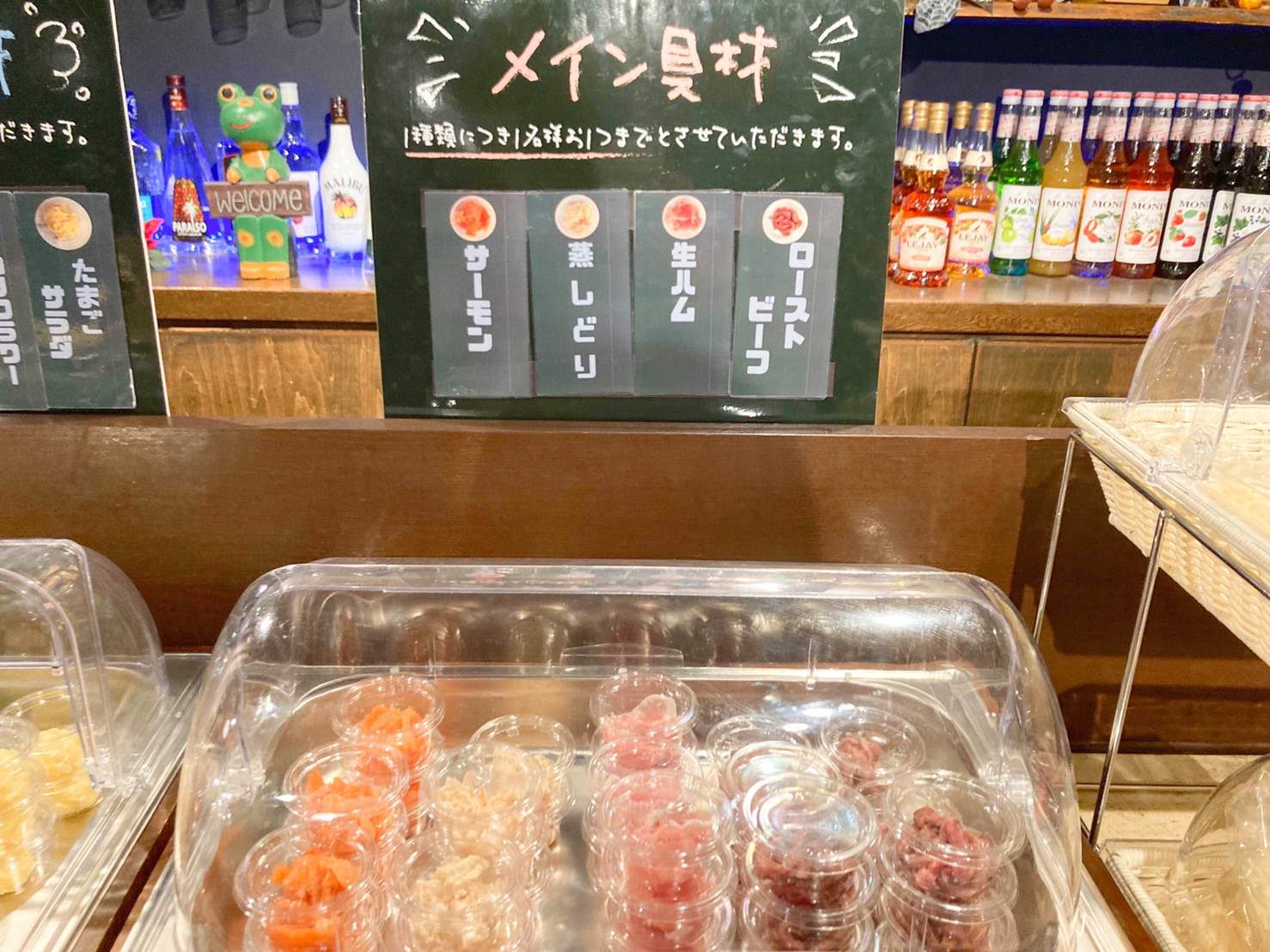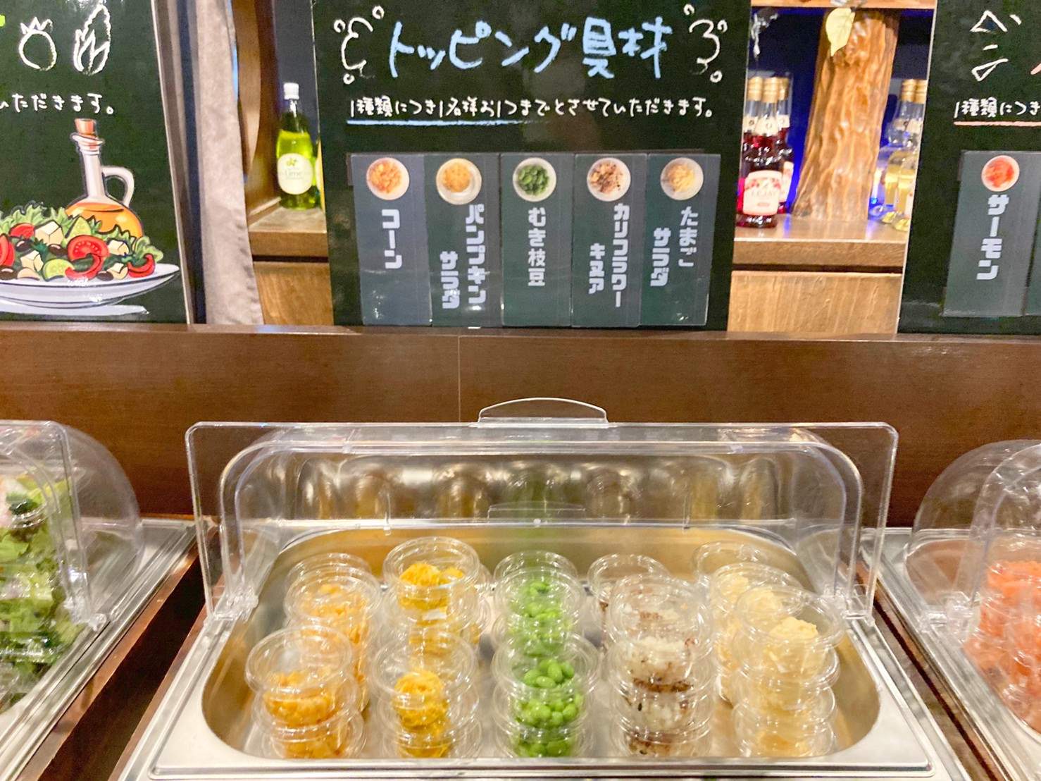 ▲次にトッピング具材🍴コーン・パンプキンサラダ・枝豆・カリフラワーキアヌ・たまごサラダとこちらも種類豊富!
