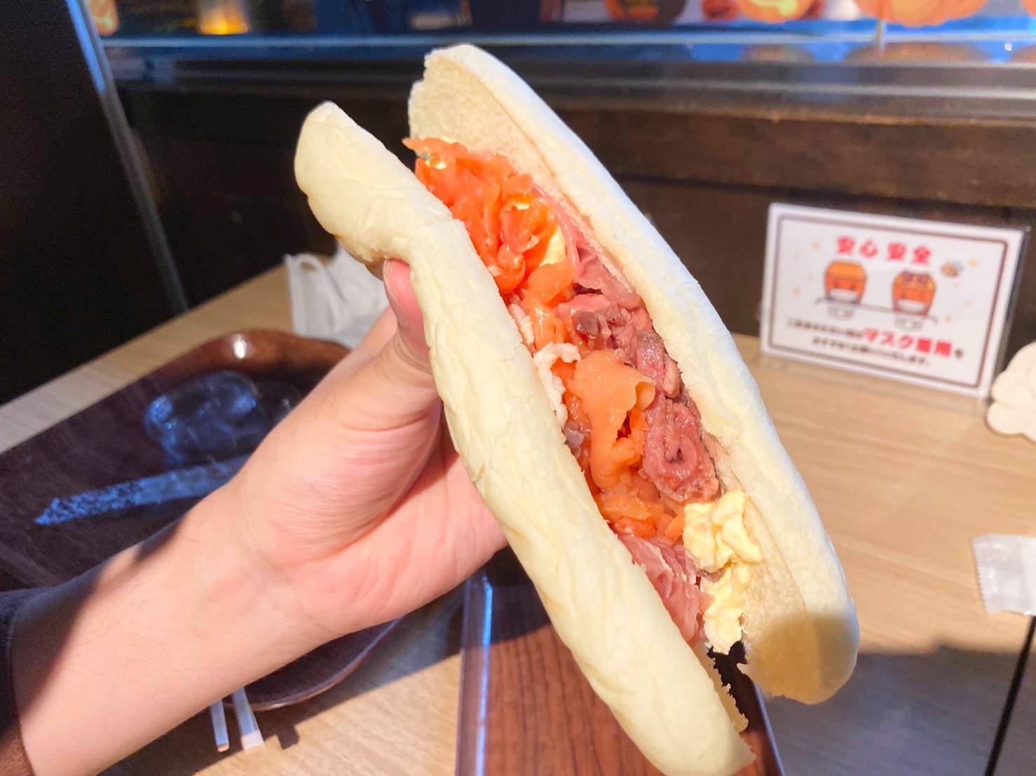 ▲そう口にしたぷらはのパニーニは、メイン食材全種類のサーモン・生ハム・ローストビーフ・蒸し鶏に加え、たまごサラダまでぶち込んだ何でもありの状態!