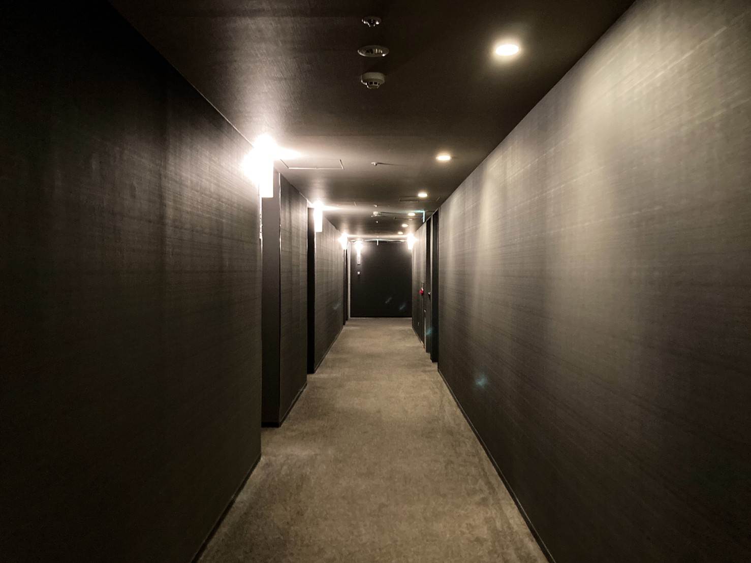 ▲ホテルの廊下はこんな感じ!写真では何やら洞窟?のような雰囲気を醸し出していますが、実際は照明がグッと抑えられ、黒が映えるおしゃれ空間です✨