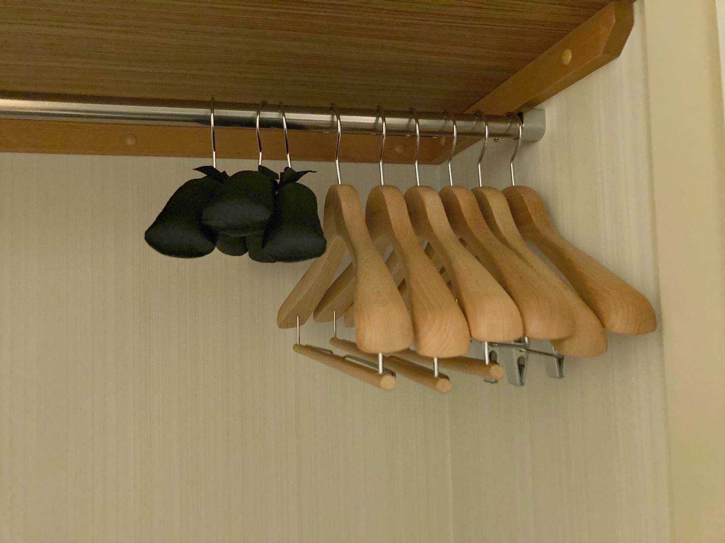 ▲クローゼット内にはこれでもか!というほどハンガーがたっぷり◎どんなタイプの服を持ってきていても、ピッタリ合うので助かりますね。