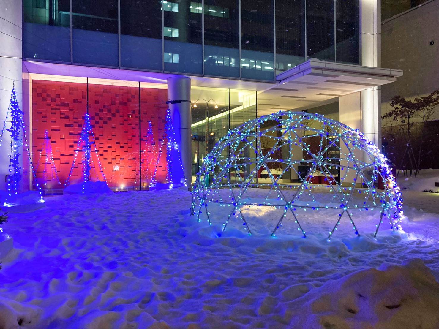 ▲ホテル前には札幌の景色をイメージしたイルミネーションも。曜日によって色が変わるなんて面白い。