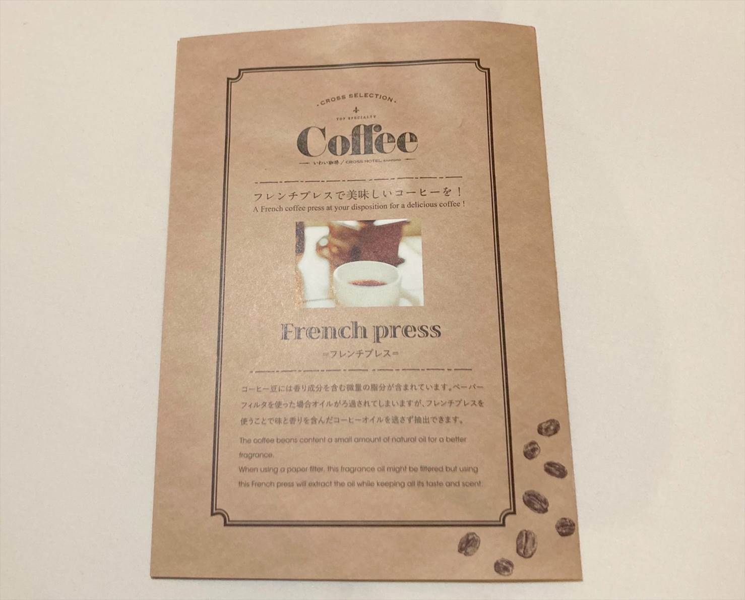 ▲物珍しくって嬉しい反面、当然のごとく”フレンチプレスってどうやるの??”という気持ちになったのですが、大丈夫!オリジナルコーヒーの淹れ方指南書が用意されていました。
