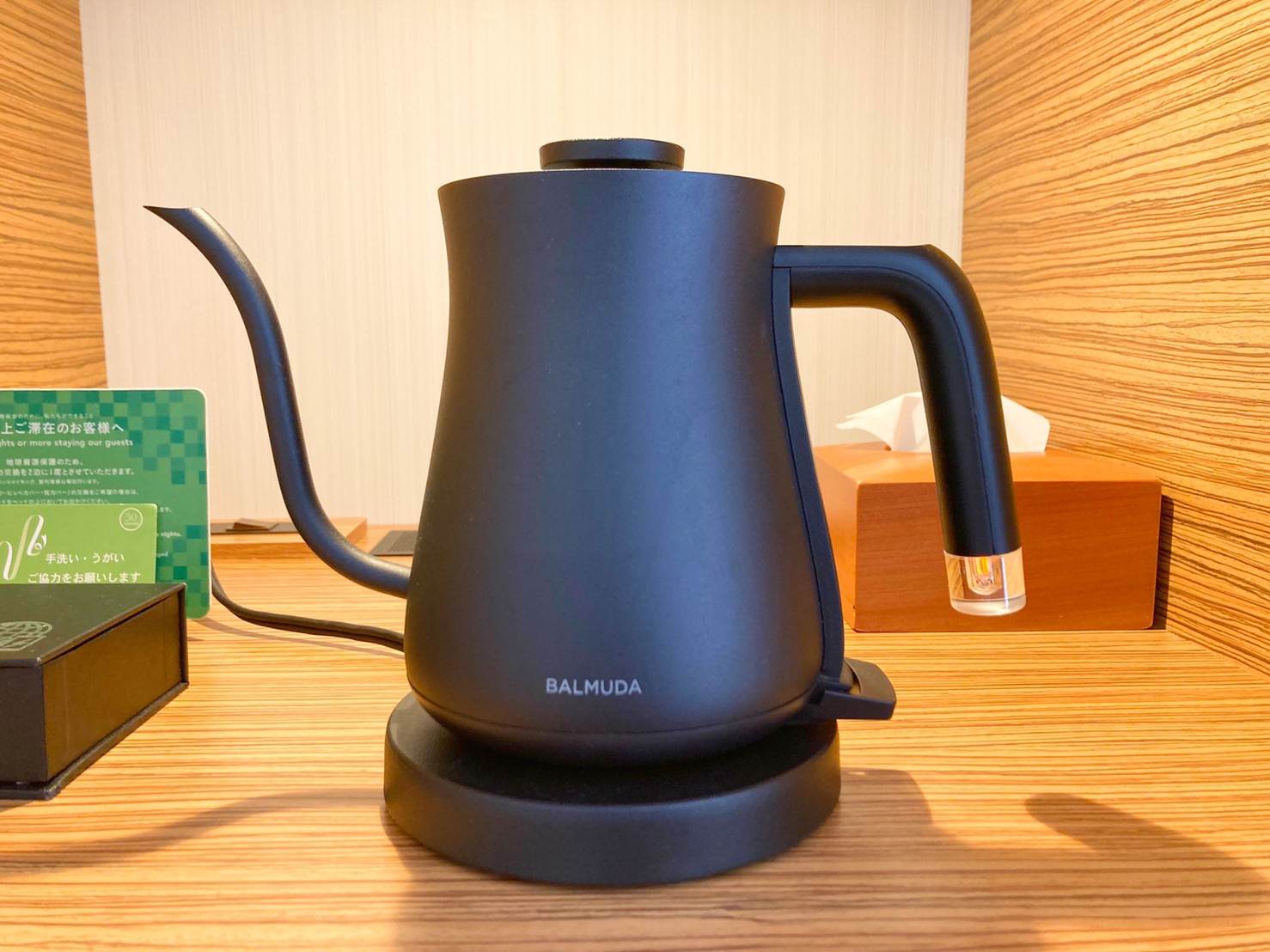 ▲用意されている電気ケトルはバルミューダ製のもの。コーヒー豆に均一にお湯を注ぐのにぴったりです✨
