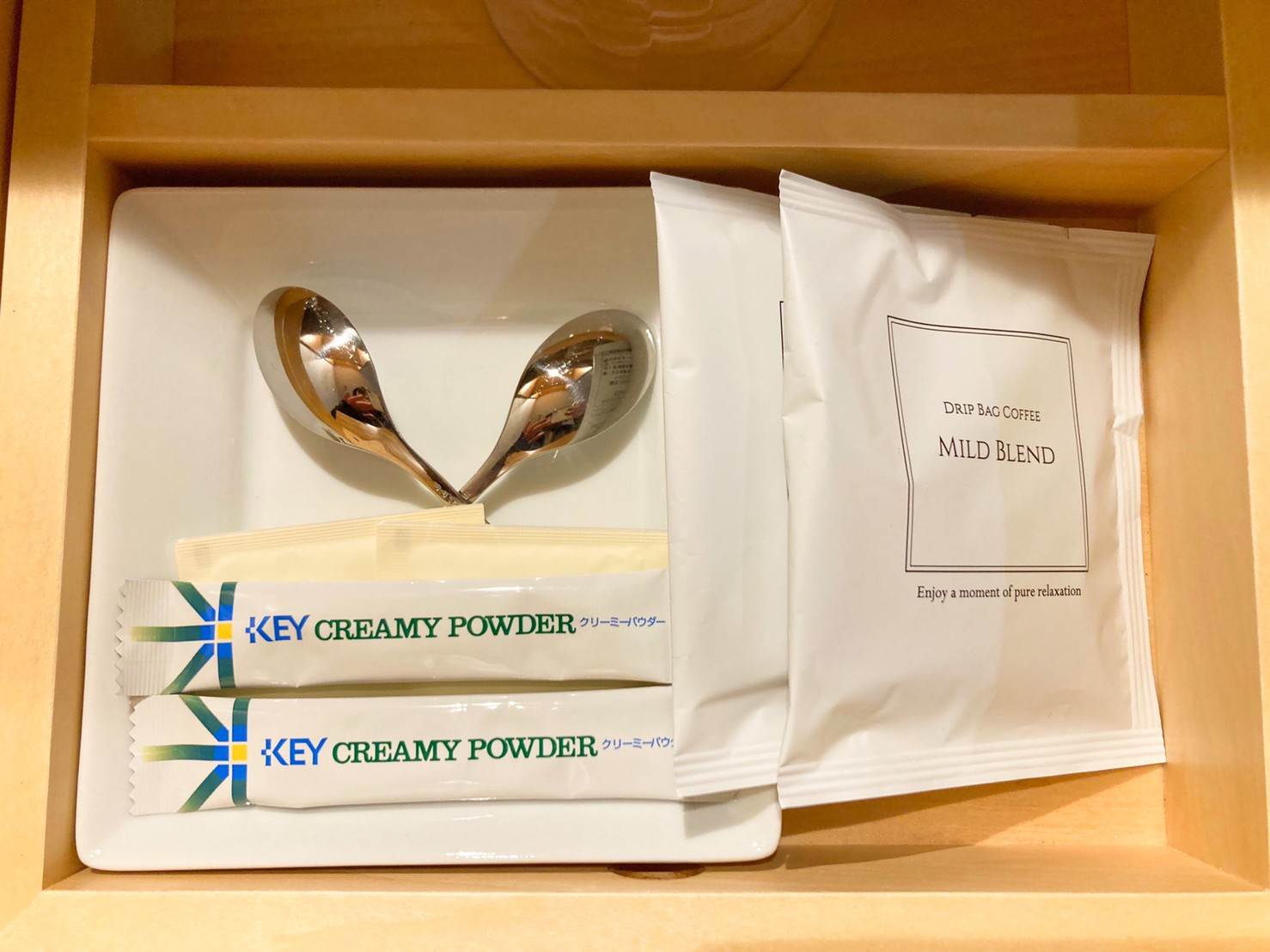 ▲クロスフロアの客室には、自分で豆を挽いてフレンチプレスでコーヒーを楽しめる設備が備わっています☕