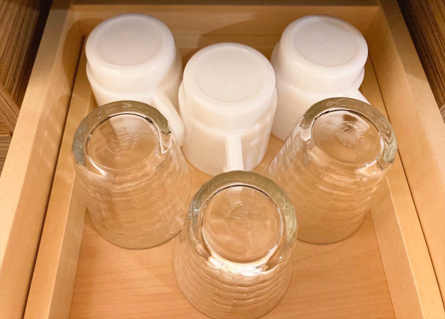 ▲ちなみに客室には3つずつグラスとマグカップが用意されています。