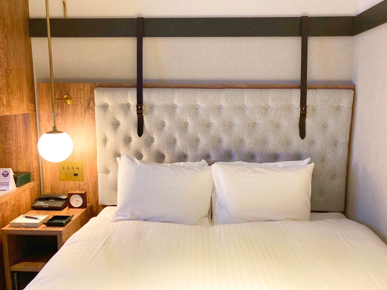 ▲いざ客室へ❗今回予約したのはモデレートクイーンタイプのお部屋。コンパクトながらも窓際にはソファ&机も用意されていて快適…!全体的に木が使われていて温かみがあります◎