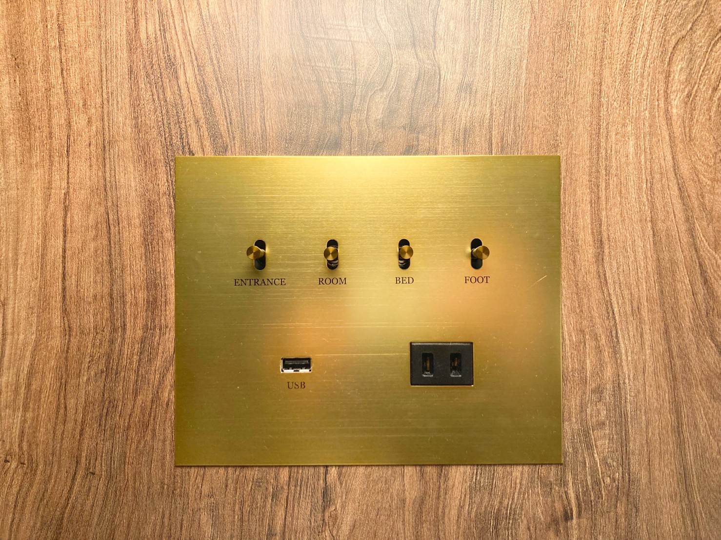 ▲ベッド脇のスイッチも充実。USB/電源もあり便利です。