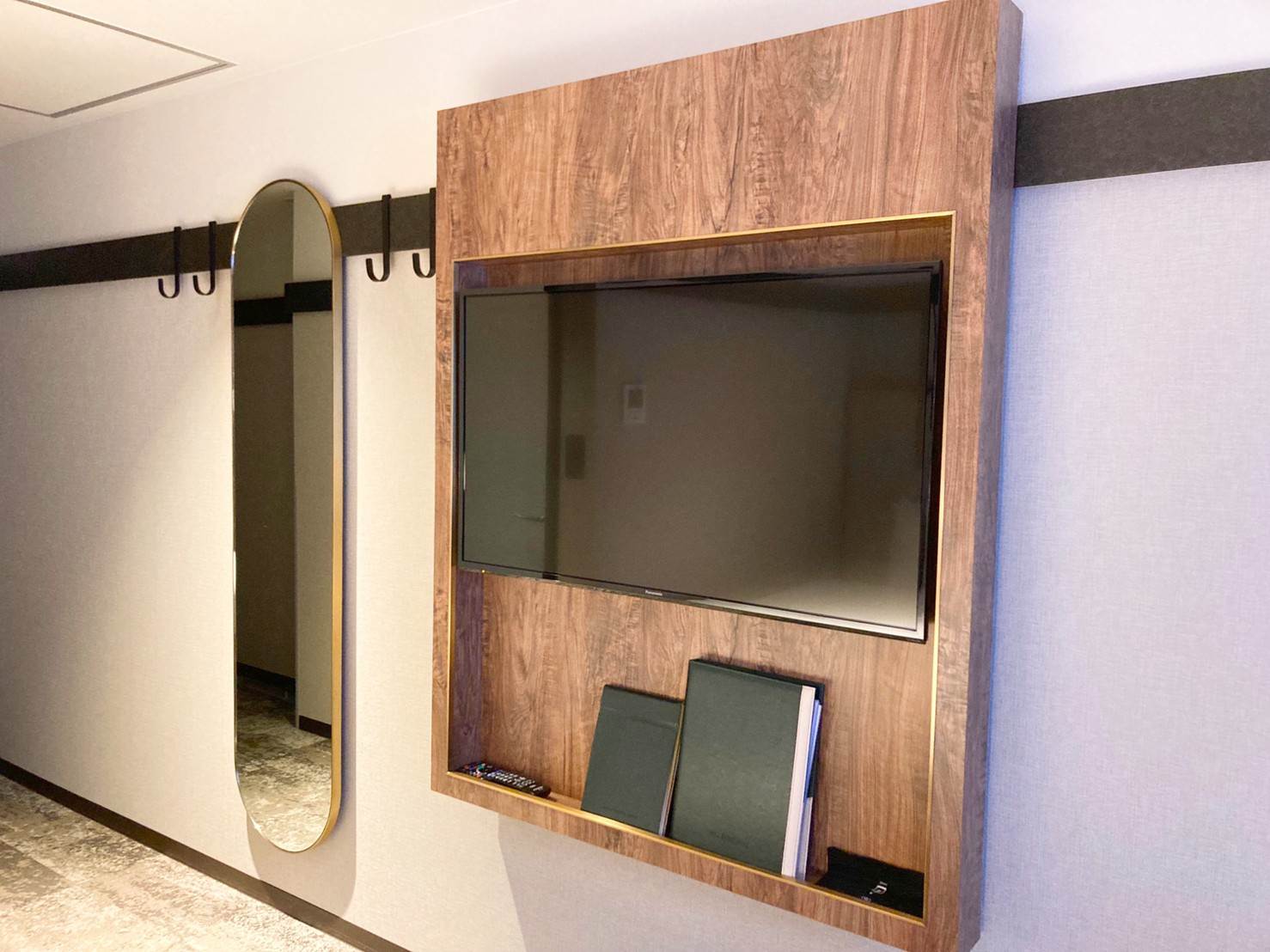 ▲ベッドの向かいにはTVがありました。TVのフレームも木で統一されていて良い…
