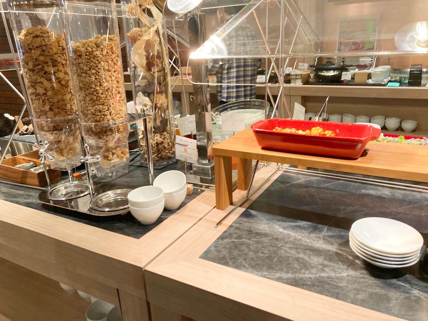 ▲シリアル類も用意。自宅でちまちまフルグラを食べている身()としては、これだけの量があるとそれだけでテンションが上ってしまいます。