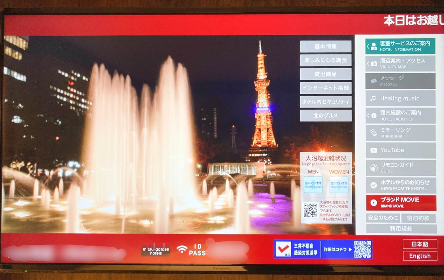 ▲そう、お部屋のTVで大浴場の混雑状況を簡単に確認可能だったんです✨ QRコードを読み取ればスマートフォンでも確認できるのでこれはありがたい仕組み…!
