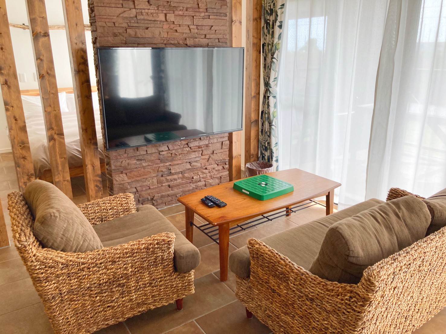 ▲このTVエリアも贅沢だなあ…。TVには「Fire TV stick」が設置されており、コテージ側のサービスとしてAmazon prime videoが見放題でした◎