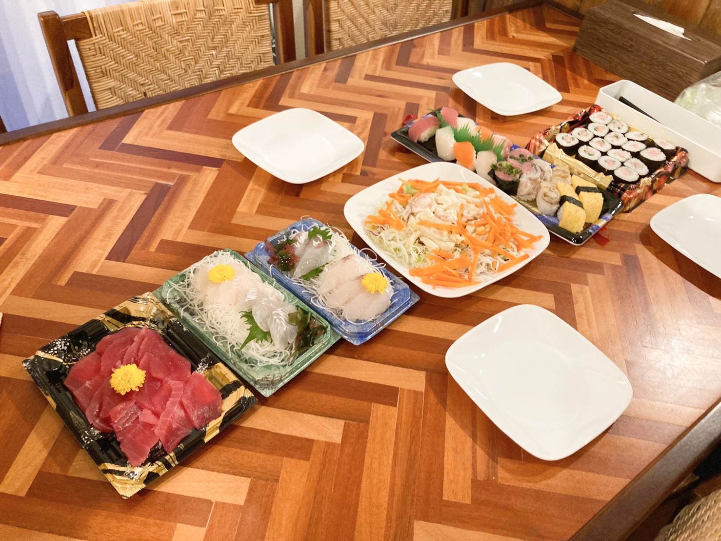 ▲買い集めた食材でディナータイム!コテージに備わっているキッチン設備にお皿等のカトラリー類を総動員して、スーパーマーケットで購入した地元の魚とちょっといい肉を堪能しました~✨お肉はさっさと食べてしまったので写真なしです。笑