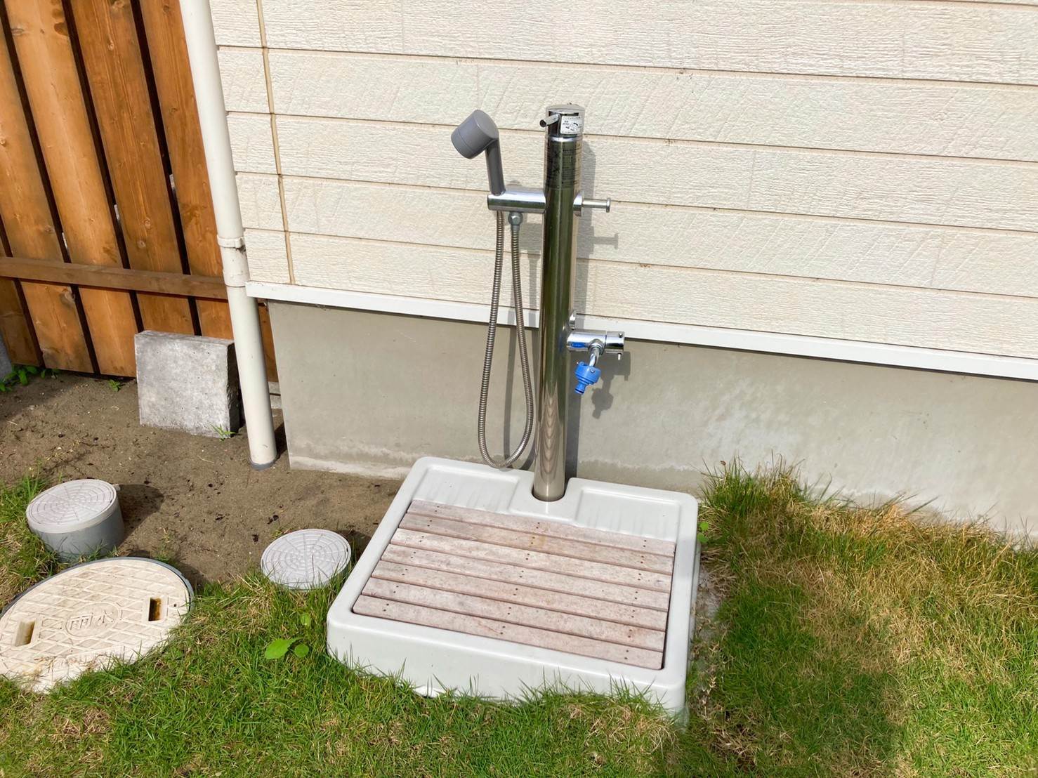 ▲お庭にはこんなしっかりとした足洗い場もあるので、家の中に入るのも楽々。お湯も出るのでありがたいです。