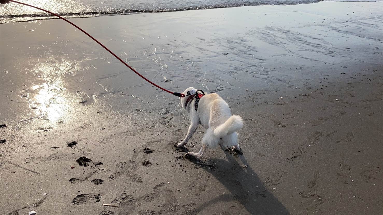 ▲わんこもそんなわけで海デビューしてみました!!最初は普通に歩いているのに足を取られる砂浜でテンションが上がりまくっていたわんこ。その気持ちはわかる。その勢いで水辺まで連れて行った……ところ…