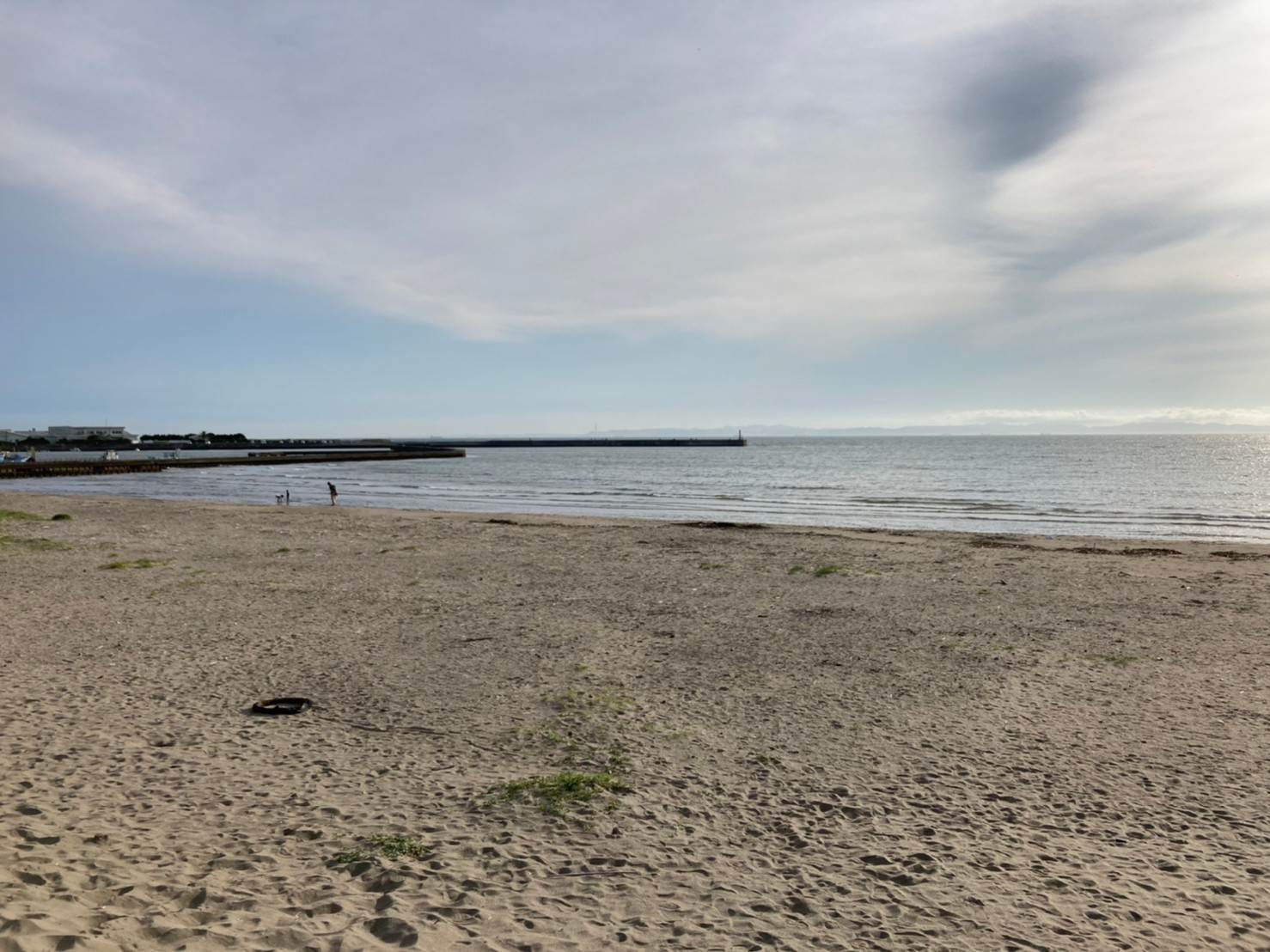 ▲まだ海水浴としてはシーズンオフのため、人もまばらな感じ。砂浜には結構文明の廃棄物ともいうべき物たちが流れてついていてさほどキレイな感じではありませんが、雰囲気を味わうには十分。