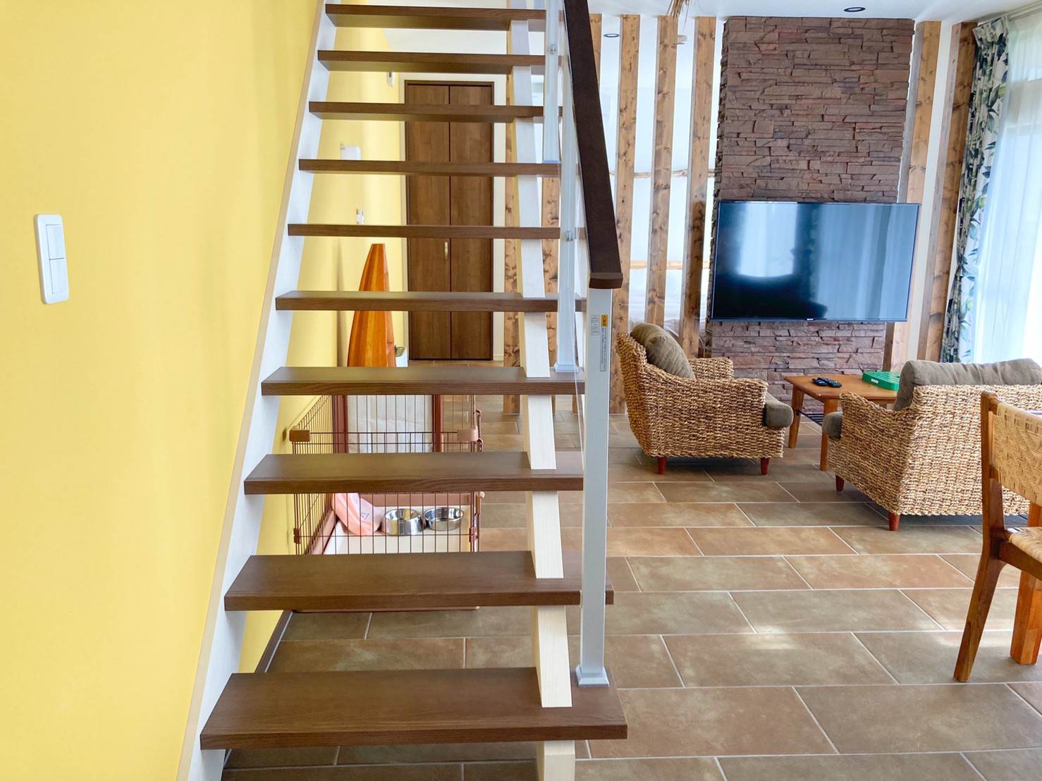 ▲吹き抜けの階段と、黄色く彩られた壁がキレイ。