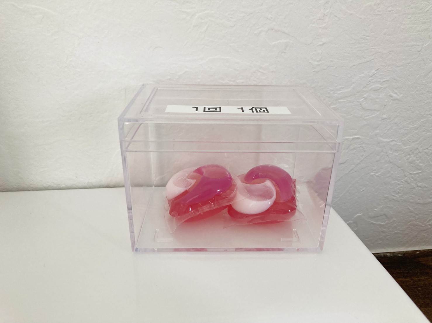 ▲話を洗面台に戻して、洗面台。ジェルボールタイプの洗剤が2つ用意されていました。