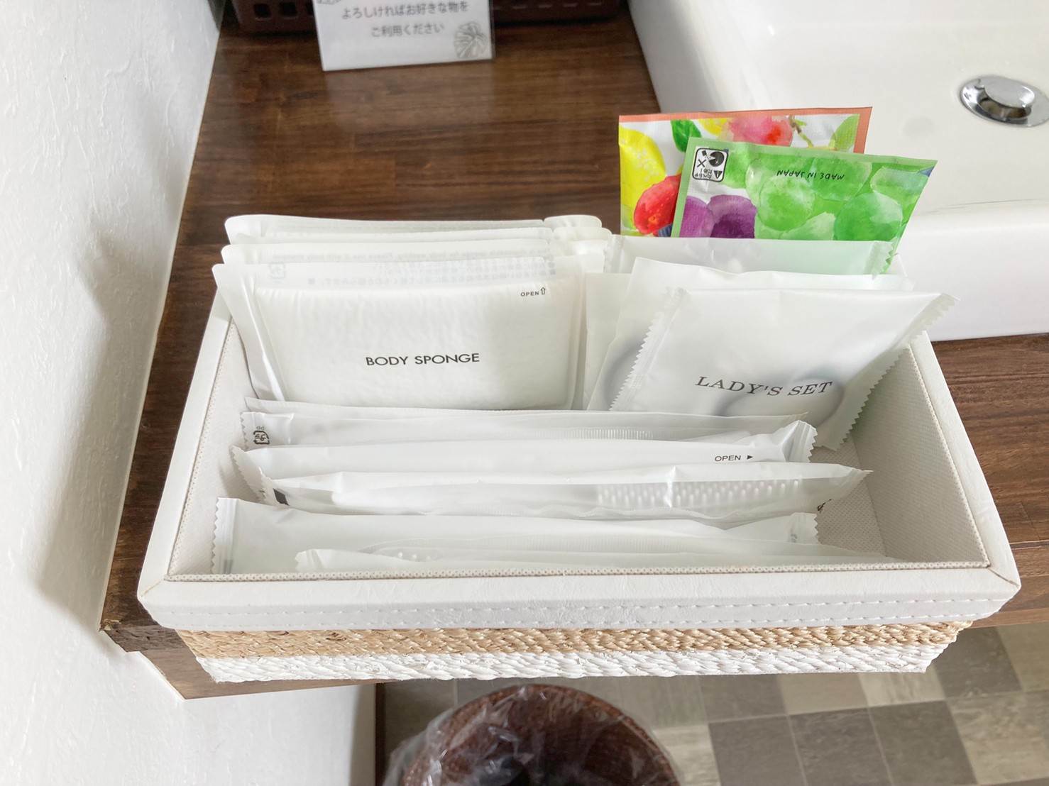 ▲その他に、使い捨てアメニティの用意もあります。歯ブラシ等の必須アメニティもちゃんと用意されているのでご心配なく。入浴剤まで用意されていたのは良かったですね!