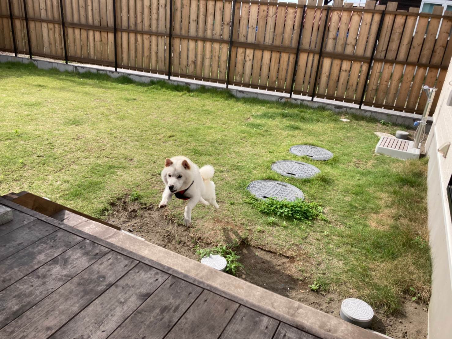 ▲わんこも興奮して、ウッドデッキをぴょんすか飛び回っていました、随分気に入ったご様子✨