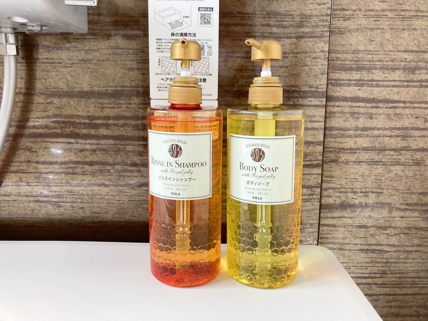 一応言っておくと、普通洗面台から目に入るから、コテージ側にリンスインシャンプーで落とす意図は無いと思うのだよね。。
