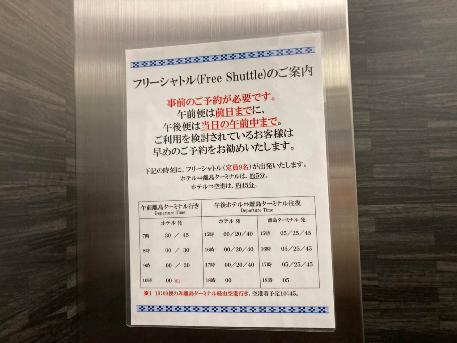 普通に歩く分には「ちょっと遠いな~」程度の距離ですが、流石にスーツケース持ちだときつい距離で少々困っていたところ、なんとホテルから離島ターミナルまでの間は無料シャトルバスが利用できました◎