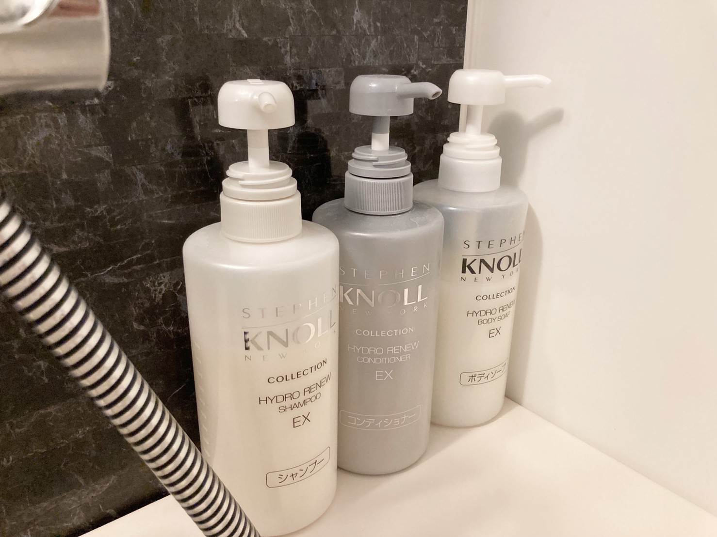 ▲シャンプー・コンディショナー・ボディソープが完備されています。
