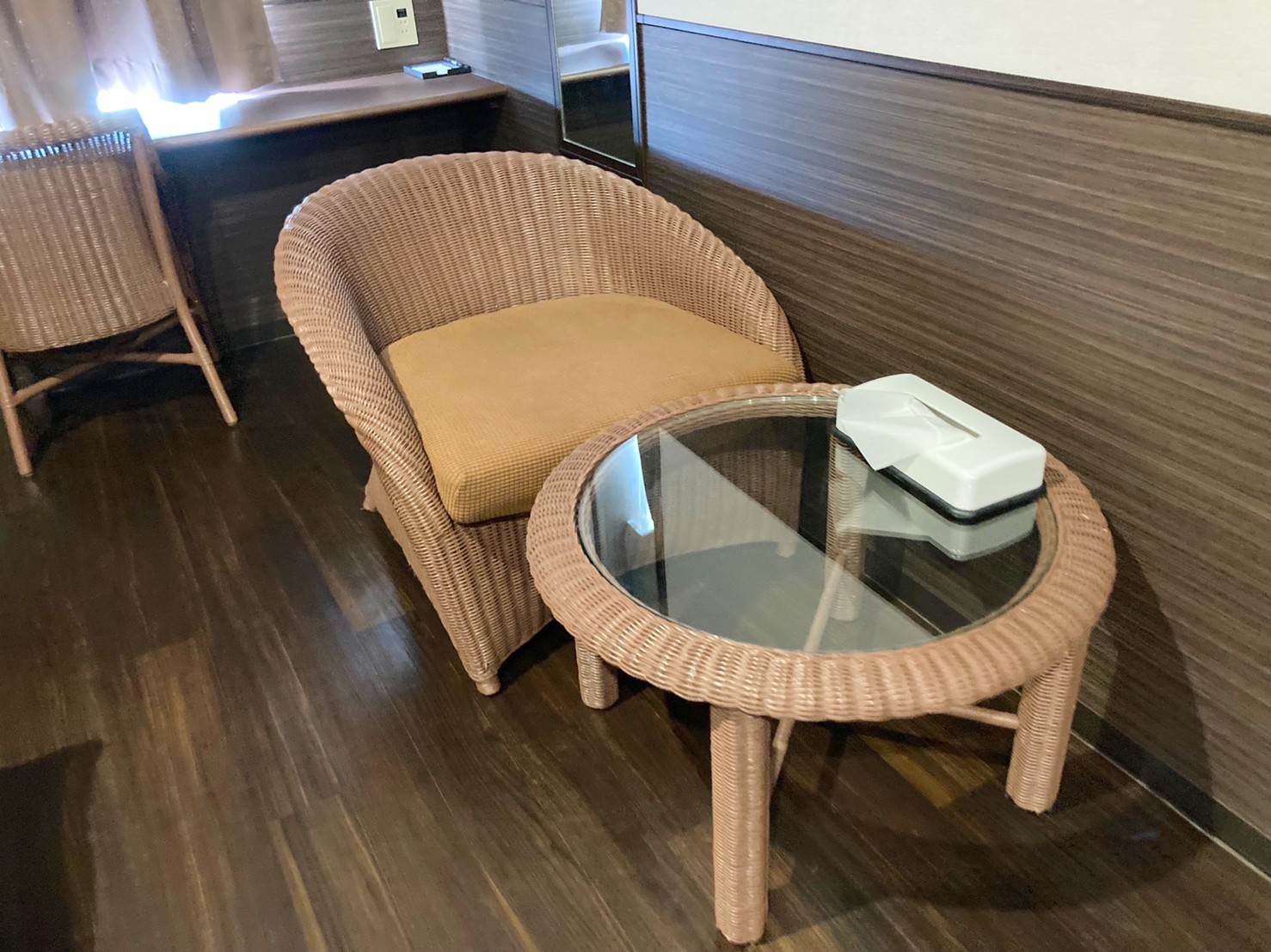 ▲ベッドの向かいにはリゾート感のあるテーブル・椅子のセット。